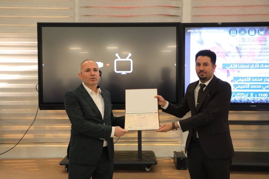 A workshop was organized under the aegis of Prof. Dr. Zainab Al-Mulla Al-Sultani, President of Al-Zahraa University for women and under the supervision of the faculty of Health and Medical Technologies / Department of Radiology and Sonar Techniques and the Department of Women's Affairs. The workshop was also held in cooperation with the Breast Cancer Center of Imam Hussein Holy Shrine and the Center for Continuous Education, during the Breast Cancer Awareness Month.