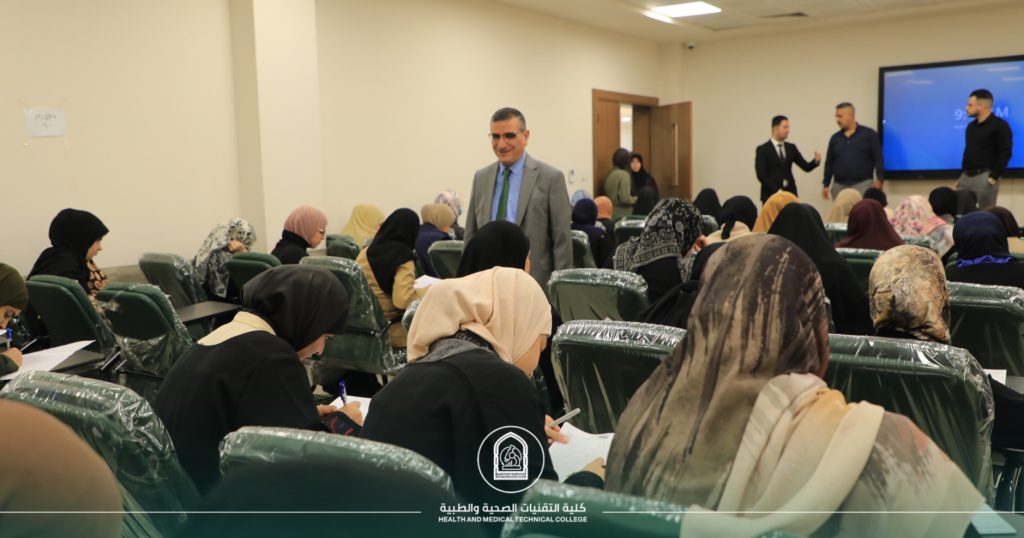 Prof. Dr. Hassan Al-Qazzaz, Dean of the faculty of Health and Medical Technologies, conducted an inspection tour this morning, November 17, 2024, to monitor the progress of the midterm exams.